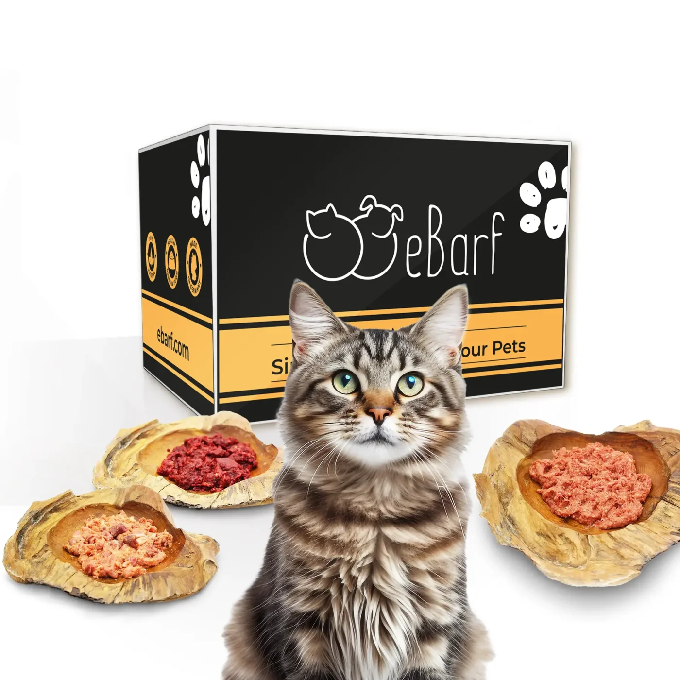 The Fix-BARF® Pure Sample Package allows you to try our premium complete menus made with chicken, beef, and turkey. These menus provide your cat with all necessary vitamins and minerals and are especially suitable for allergy-prone cats thanks to their single-protein composition.