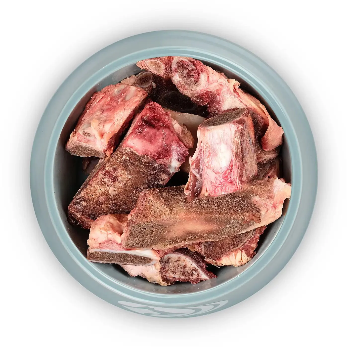 Bones are, like muscle meat and offal, an essential component of a balanced BARF diet. They contain a lot of calcium, which is crucial for the health of bones and teeth. Adequate calcium intake is important during growth and at every other life stage of your dog to keep bones, teeth, and joints strong and healthy.