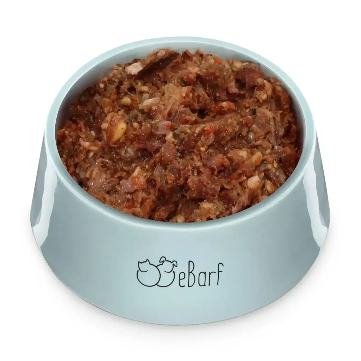 Per garantire che il tuo cane riceva tutti i nutrienti essenziali, utilizziamo nei nostri menu completi solo ingredienti freschi e di alta qualità provenienti dalla Germania. I menu completi basati sul principio dell’animale preda sono ideali per l’alimentazione quotidiana e consistono in 80% di componenti animali e 20% di componenti vegetali. Devono essere integrati solo con integratori essenziali come farina di alghe, olio Omega-3-6-9 e olio di fegato di merluzzo. Naturalmente, puoi anche aggiungere noci, semi o erbe per personalizzare ulteriormente i pasti.